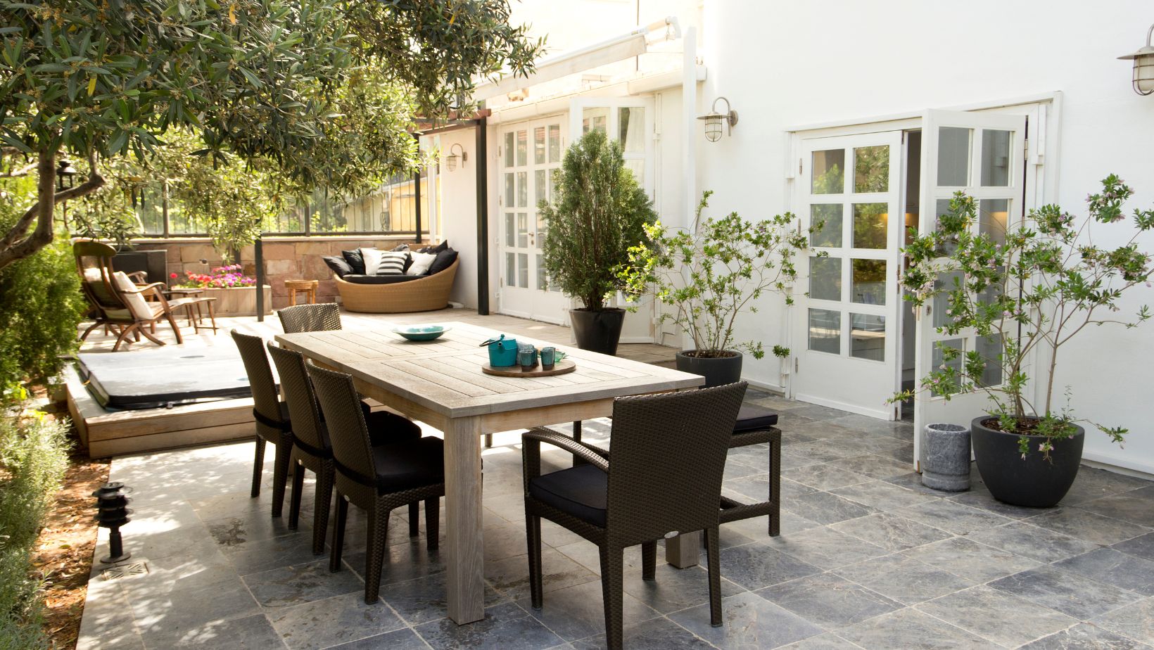 You definitely want your privacy when you’re trying to relax. If your outdoor space is not secluded, it may be worth adding elements that will screen out your neighbors. Tall plants, a privacy screen, or a trellis with vines will work well to block out the view and noise.